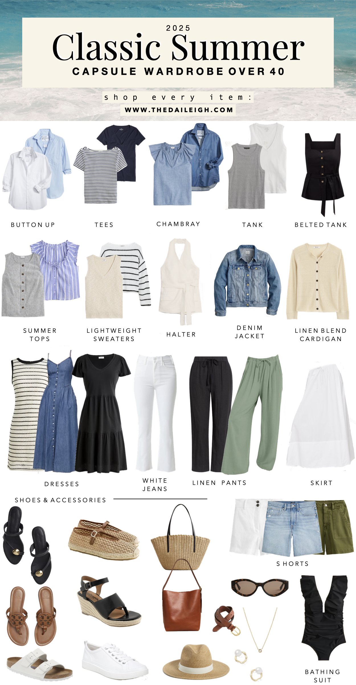 This capsule wardrobe is perfect for everyday wear, with a selection of items that can effortlessly transition from casual to dressy. Here’s to a fun-filled and fabulous summer!