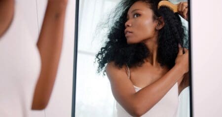 Glow & Grow: Black Beauty, Haircare, and Skincare Tips Facebook Twitter Pinterest LinkedIn EmailYoung black woman combs her hair while…
