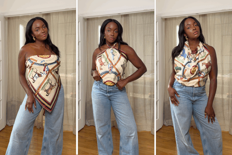 Lightweight and versatile, the summery silk scarf is the outfit-maker of the season. Whether you’re wearing one around your neck to add dimension to your office look, or wearing it alone as a top, these wraps are the kind of accessory that pulls a look together in seconds.