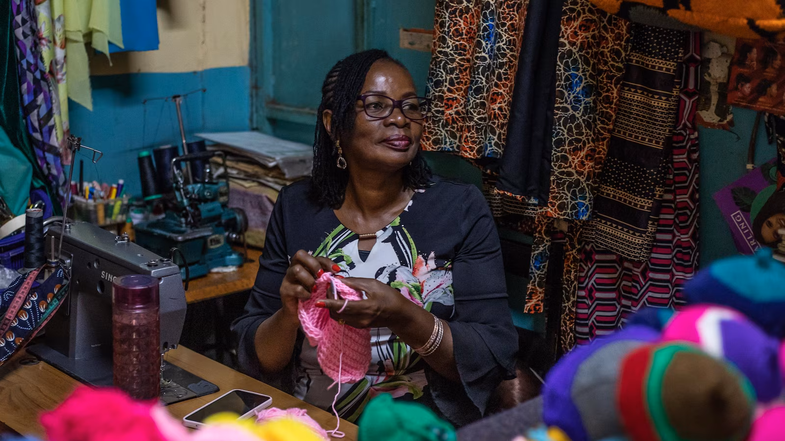 Mwangi began in 2017 by knitting hats and scarves, then met a woman who was knitting a prosthesis.