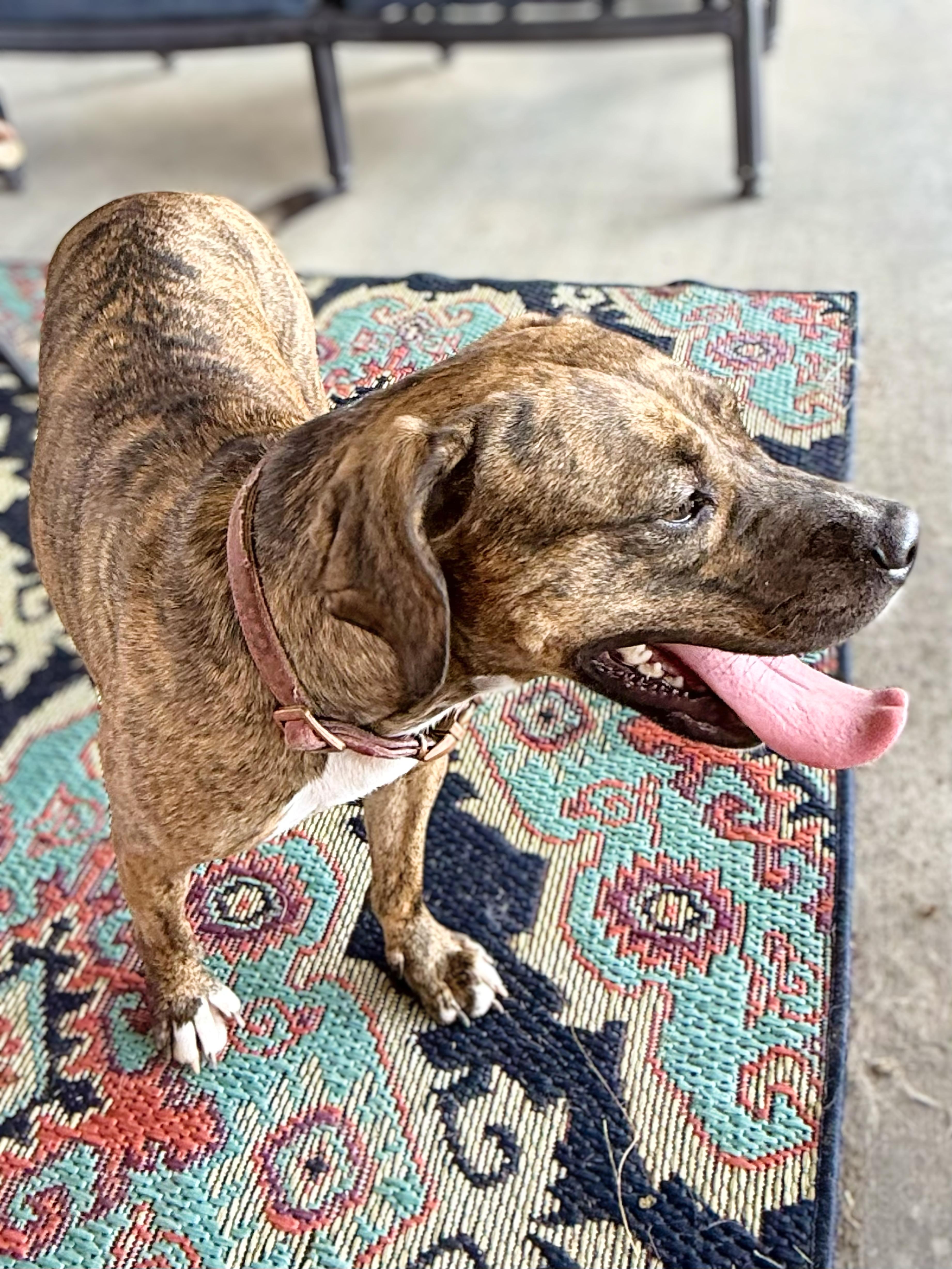 Cricket is a young female Tennessee Treeing Brindle mix who is available for adoption from Coffee Cause for Paws in Douglas, GA.