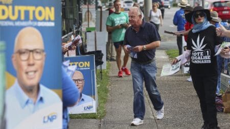 NPR Replace: A person walks right into a polling station in Brisbane, Australia, Saturday, Might 3, 2025. Pat Hoelscher/AP cover…