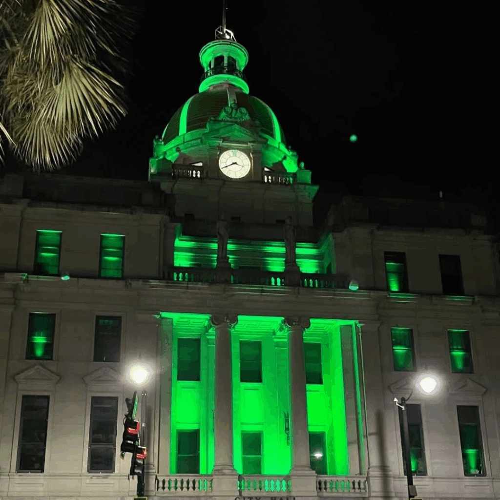 Earlier this year, the City of Savannah completed the first phase of the City Hall Restoration Project. The project is the first major restoration of the historic building’s interior since it opened in 1906. During the first phase of the restoration project, the building’s exterior lighting was upgraded with a permanent system that allows staff to illuminate the building in celebration of holidays and special events.