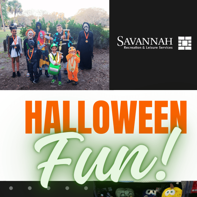 On Thursday, Oct. 24, the Recreation and Leisure Services Department will host two Halloween events. The annual Trunk-or-Treat will be held at Grayson Stadium at 5 p.m. and will feature decorated trunks filled with candy, food trucks, a haunted house, face painting, a live DJ, and a costume contest for all ages. City of Savannah and community vehicles will also be on display for families to enjoy.
