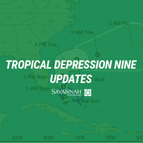 SAVANNAH – The City of Savannah will continue to monitor and prepare for any potential impact from Tropical Depression Nine following the latest forecast from the National Hurricane Center (NHC) which indicated the storm will shift east as it tracks north and is unlikely to make landfall.