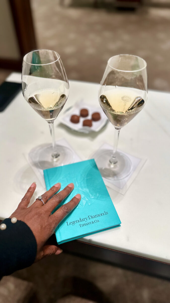As for the ring oh my goodness. He presented me with the most stunning Tiffany & Co. “Tiffany Novo” engagement ring… the very first ring I tried on last year. He remembered! Even crazier, I had stopped at Tiffany’s just a few days before to get my finger sized again and ended up with the same sales consultant unbeknownst to me, she had sold him the ring the day before. What are the odds? I had to return to have it resized and she just smiled knowingly. Pure magic.