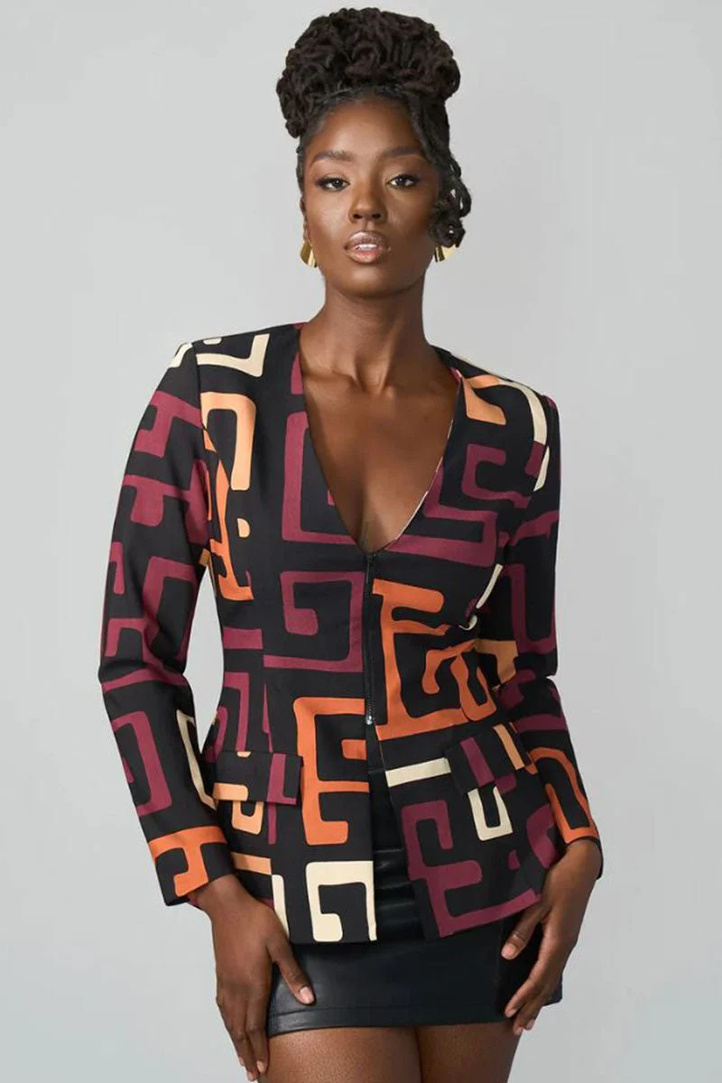 The Modern Trailblazer: Fafa African Print Zip-Up Blazer