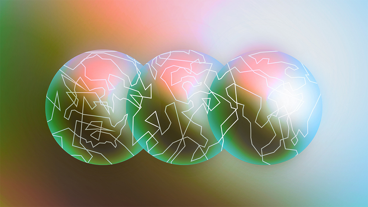 Abstract spheres with colorful gradient background.