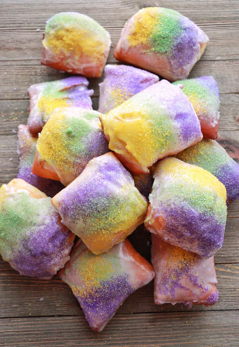 When I first created this recipe several years ago, I was a New Orleans kid living in Dallas, Texas, wanting to bring a taste of two of my favorite things to eat during Mardi Gras season, king cakes and beignets.