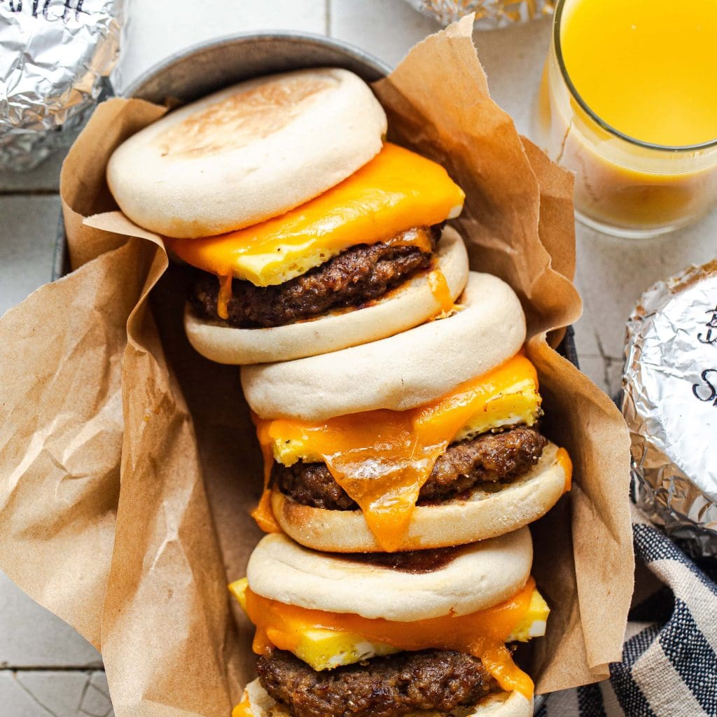 These fantastic Fridge Freezer Breakfast Sandwiches are such a delicious staple to bring deck for simple reheating on active days! Conserve time throughout the week by making these sandwiches beforehand and conserving them in the refrigerator freezer for a quick, reheat-and-eat morning meal. Fresh and deeply yummy ground sausage patties, an uncomplicated egg combination, sliced cheese, and English muffins= a homemade pleasure for dish prepping, active organization mornings, morning meal occasions, and whatever in between!