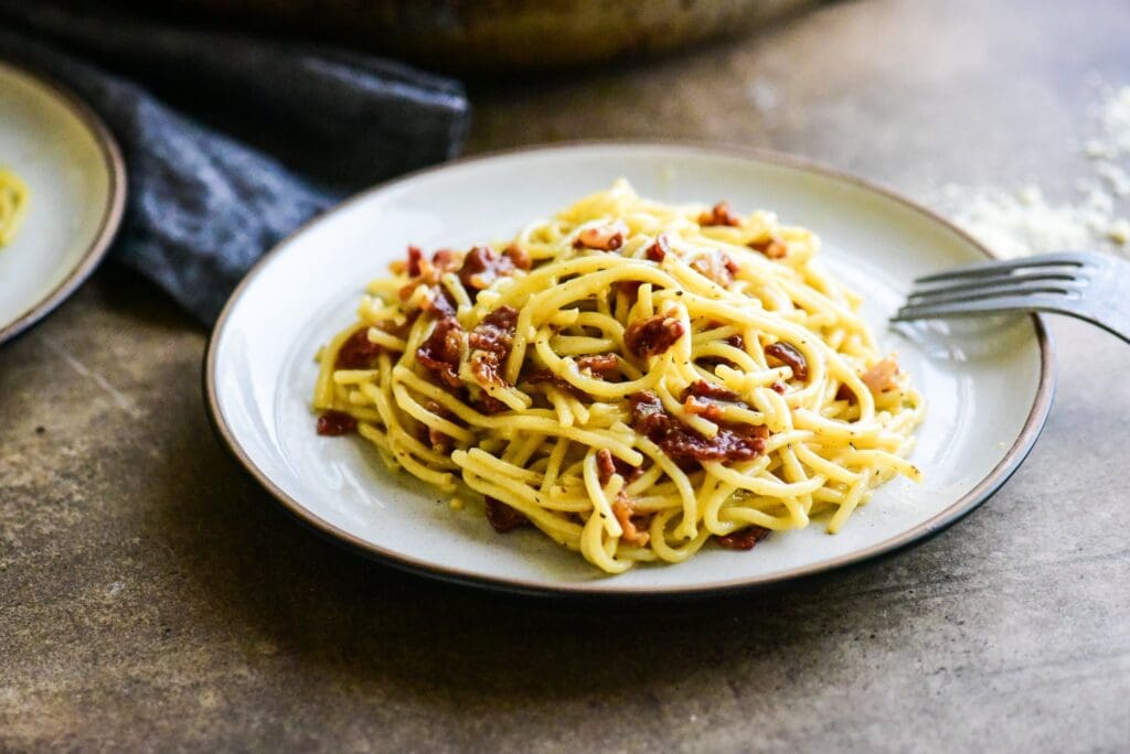 One fry pan and a handful of simple energetic components– pastas, beef bacon, Parmesan, and eggs– create an exceptional Pasta Carbonara!
