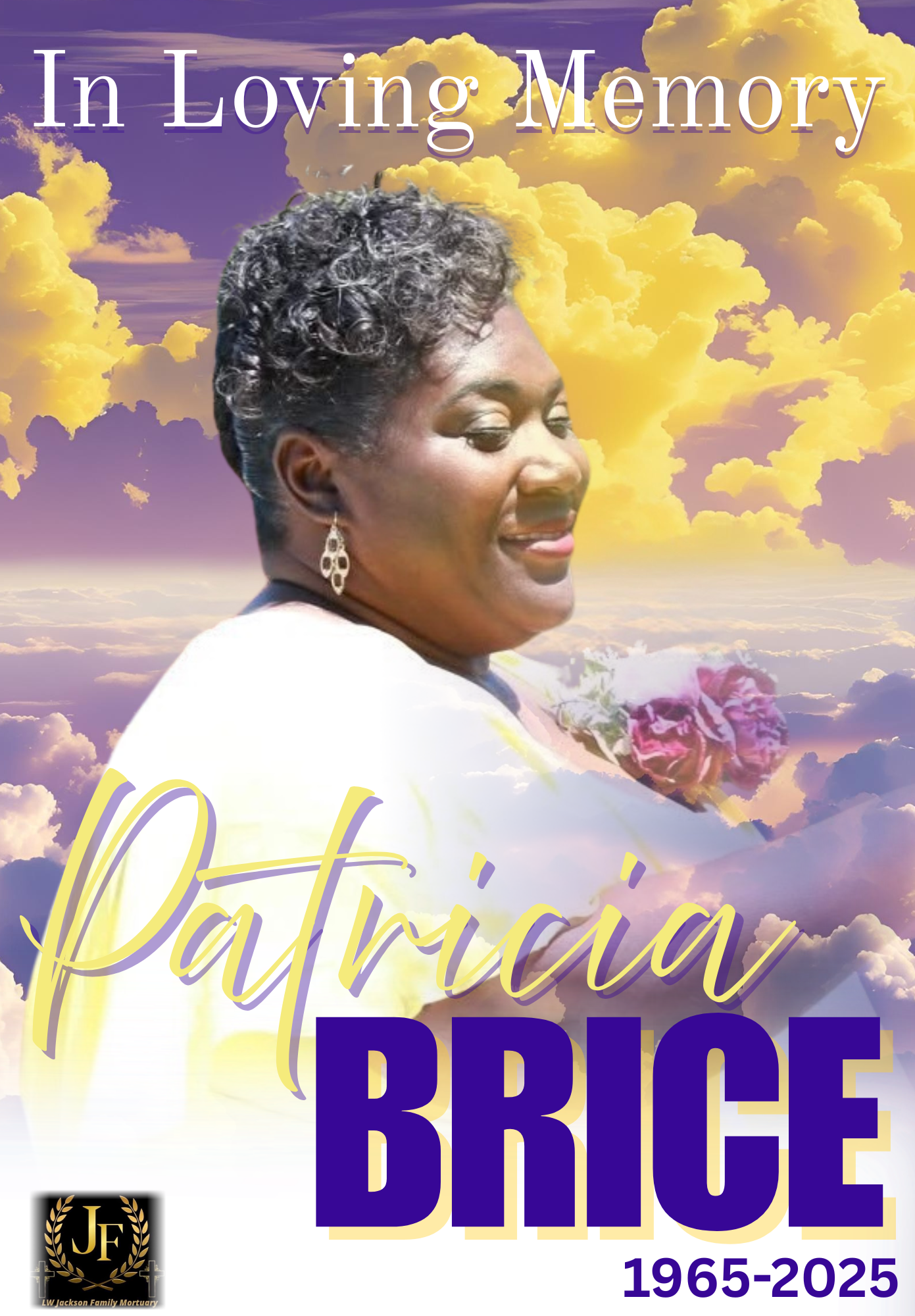 Ms. Patricia Brice, 60, of Brunswick transitioned on Saturday, May 31, 2025 at the Landmark Hospital of Savannah. A celebration of her life will be honored at 11:00 am on Saturday at Holy Band of Inspiration, 2401 Norwich St. in Brunswick, Georgia.