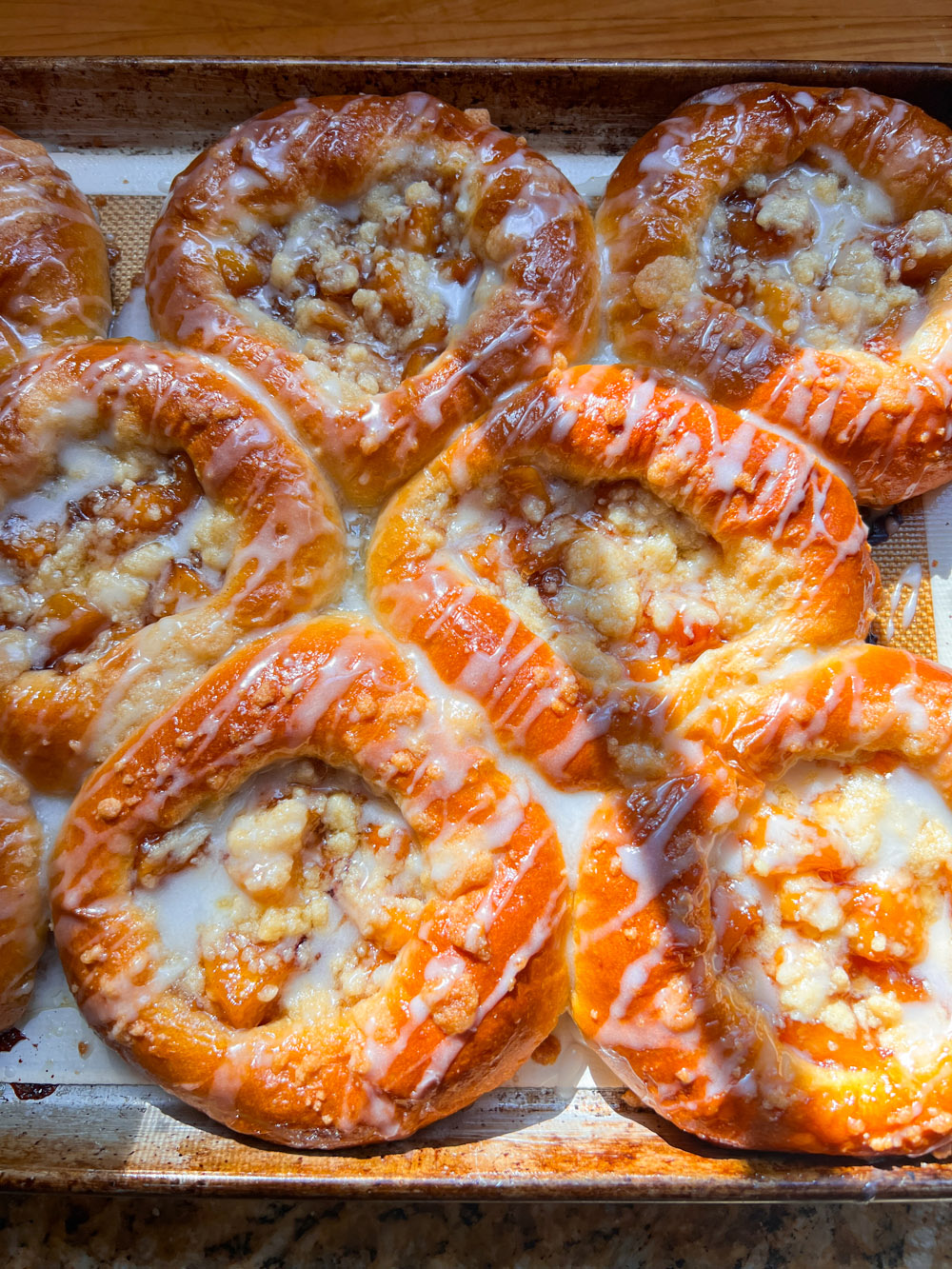 - Bake the danishes (one sheet pan at a time) on the middle-rack of your preheated 350 diploma F oven for 20 to 25 minutes or till they’re a deep golden brown. The inner temperature of the dough must be between 205-210 levels F, simply in case you’d wish to verify.