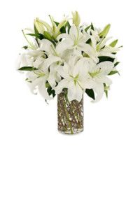 White lilies in a decorative glass vase.