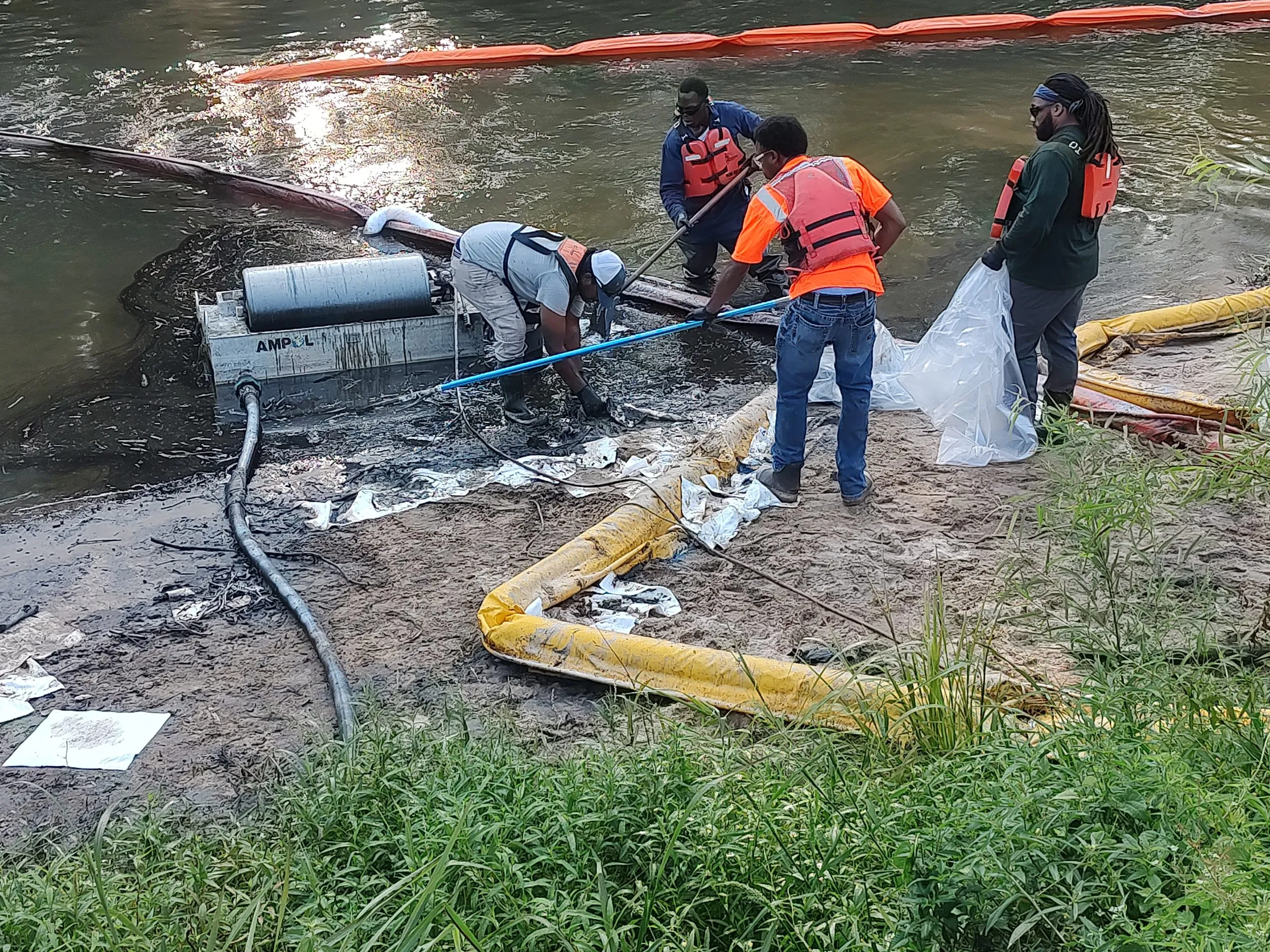 But state documents show that the agency’s response, which has left some residents living with a thick, black, chemical-ladden substance on their homes, plants, and local waters, has faced both internal and external threats. For at least one day in September, cleanup crews did not work because of “funding issues.” And on Sept. 22, work was suspended after workers said a man “in possession of a rifle fired shots in the direction of response personnel.”