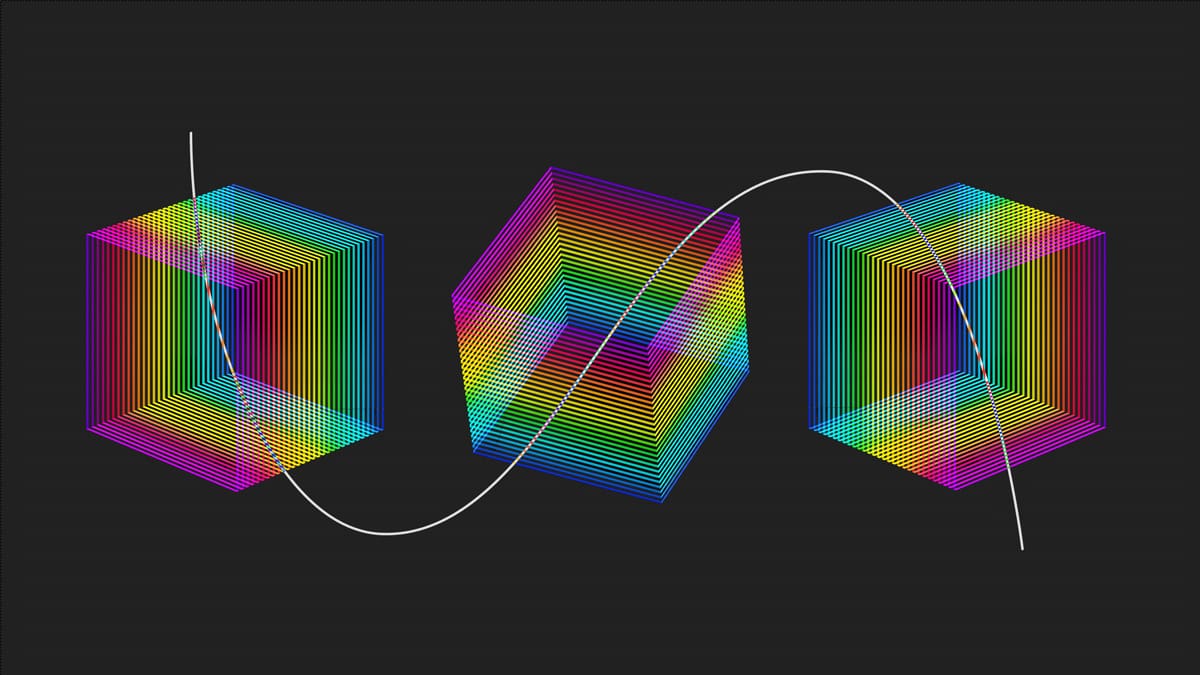 Colorful geometric cubes with a wavy line.