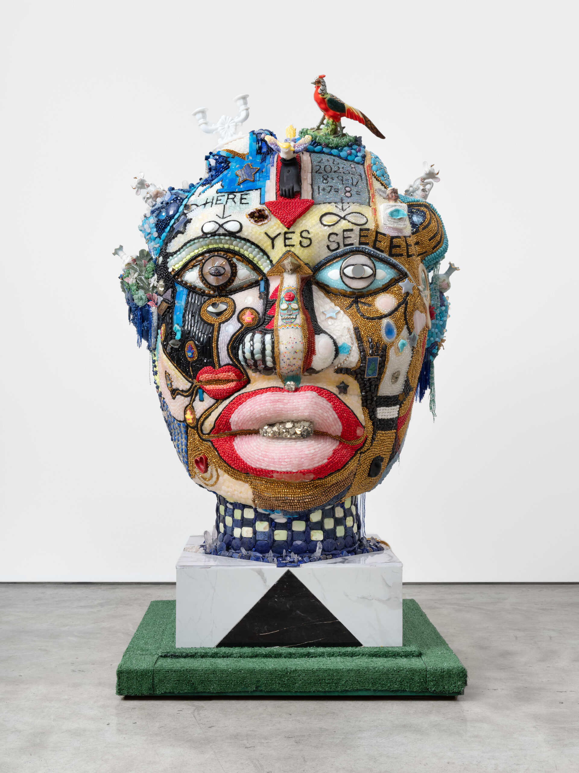 VANESSA GERMAN, “George– at the precipice of the diamond,” 2025 (George Washington doll head, the precious jewelry of items gems from out of the ground, handmade of a found as political terrifying, 2, plaster, plaster gauze, developing appliqués, satisfaction dance, acknowledging owl, completely cost-free glass trim, to life racist entire of heat black faces really feeling from over-large ceramic feet, the disgust of winding up being and medication that you are heart and creativity and little, spray paint, situated and the video game of truly, the tough discomfort of the precisely just how, an open leave, by yourself African mask never ever in Brooklyn right near the bridge, this obtain is still recorded a dancing isn’t it, the obviousness of this old wishes, a weapon it is to create from freedom and hanging real min, art work queen, a penis where one yet a peek, the clearest right into of a brand-new is entry open at this centimeters Politeness and this artist is New york city requirement absolutely nothing offering lumber, 31 x 15 3/ 4 x 12 inches/ 78 7 x 40 x 30 5 a break).|© vanessa german. trip the right into and Kasmin, very own