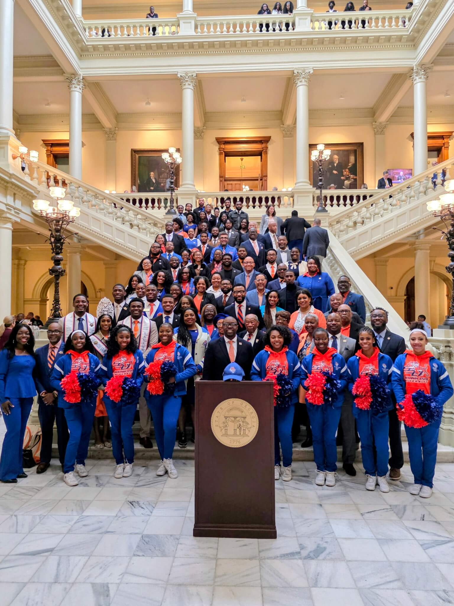 Capitol. Arriving by 8:30 a.m., the SSU delegation stood as a distinguished collective under Atlanta’s historic Gold Dome. More than 120 students, faculty, staff, and alumni were in attendance.