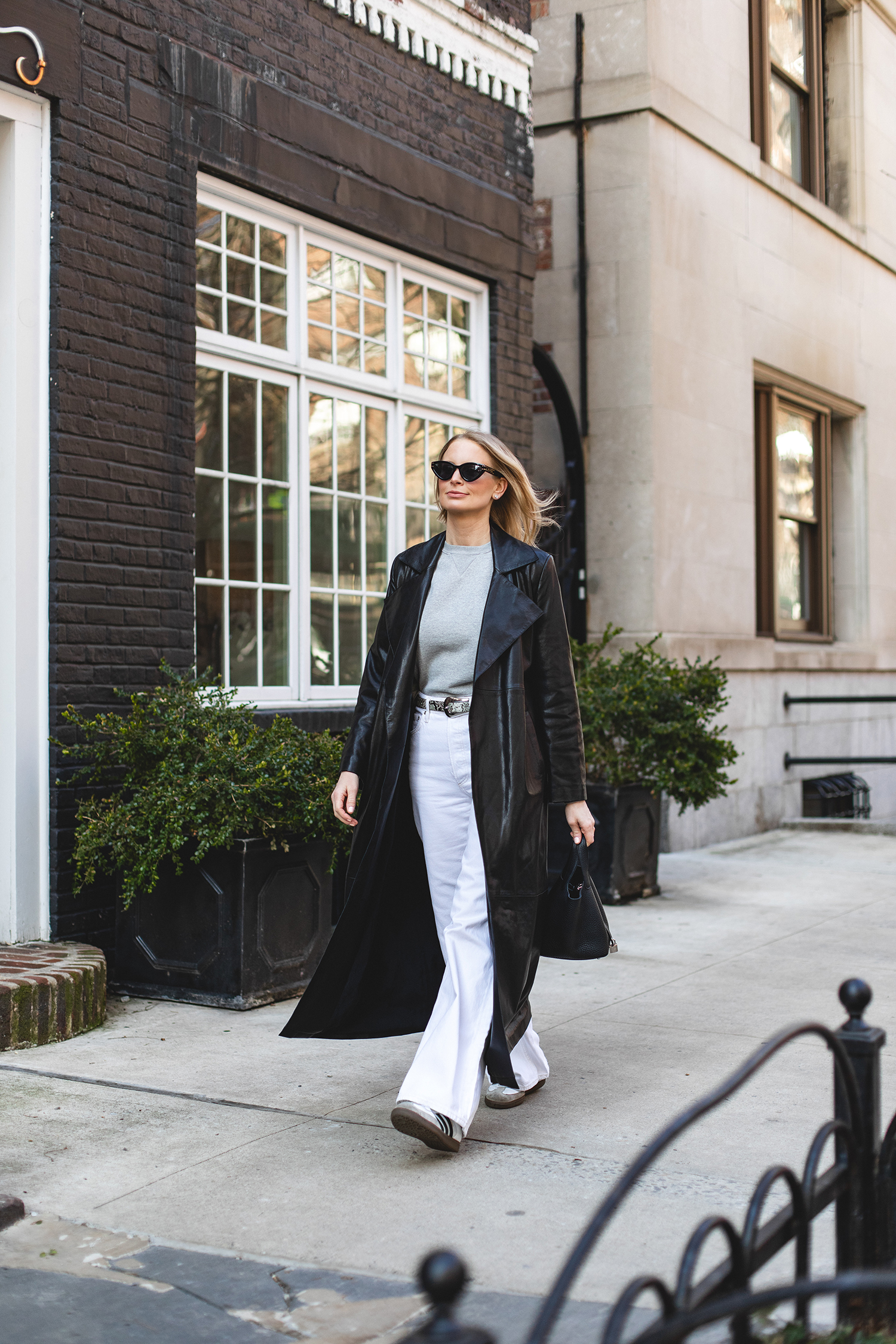 The leather trench was something I’d had my eye on for months, because I thought it would be a city-friendly transitional topper for those in-between weather moments. In terms of other transitional toppers, I’ve got a couple of solid quilted jackets and my MANGO trench – all of which serve different purposes and I style in a variety of ways. I’d say the quilted jackets are the most casual of the three categories, and while the neutral trench is more versatile, it’s also pretty lightweight and not the best for chillier days. I’m not sure I would have been warm enough in it on Saturday! This leather trench is a good balance of the two, because it has a similar level of warmth as a quilted jacket, but is slightly more elevated and could certainly be styled day-to-night like the neutral trench. All of that to say, I’m glad I have a variety because this kind of in-between weather happens a lot in New York City!