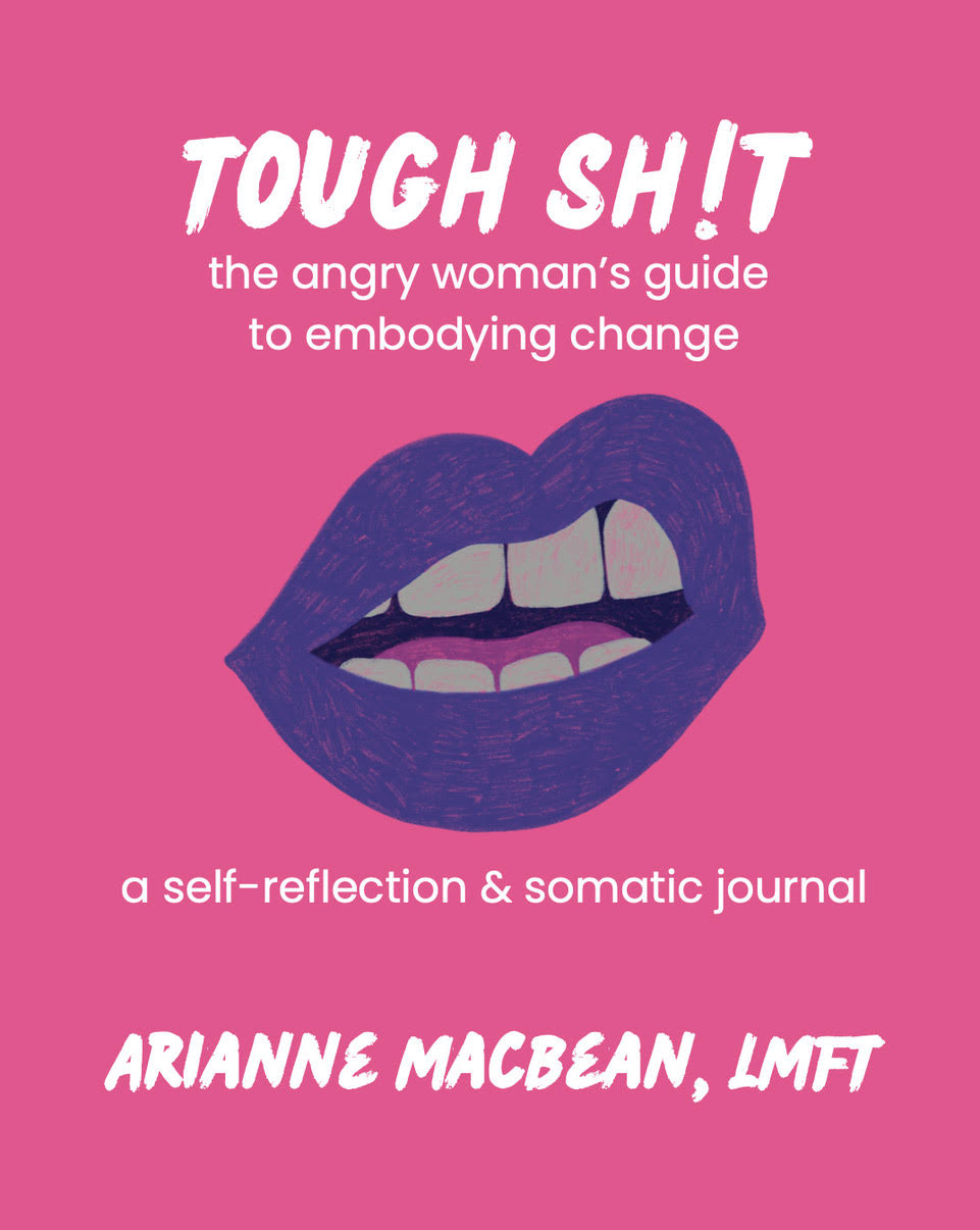 BIO: Arianne MacBean is a licensed marriage family therapist with a certificate in somatic psychotherapies and practices at Synergy Somatic Psychotherapy in Los Angeles, CA. Her first book, a self-reflection and somatic journal entitled, Tough Shit. – the angry woman’s guide to embodying change was published by Tehom Center Publishing is available everywhere books are sold on November 4th, 2025. Her essays have been published by Mutha Magazine, Nasty Women Writers Project, and Dance Chronicle. You can find more of her writing on Substack @writebig