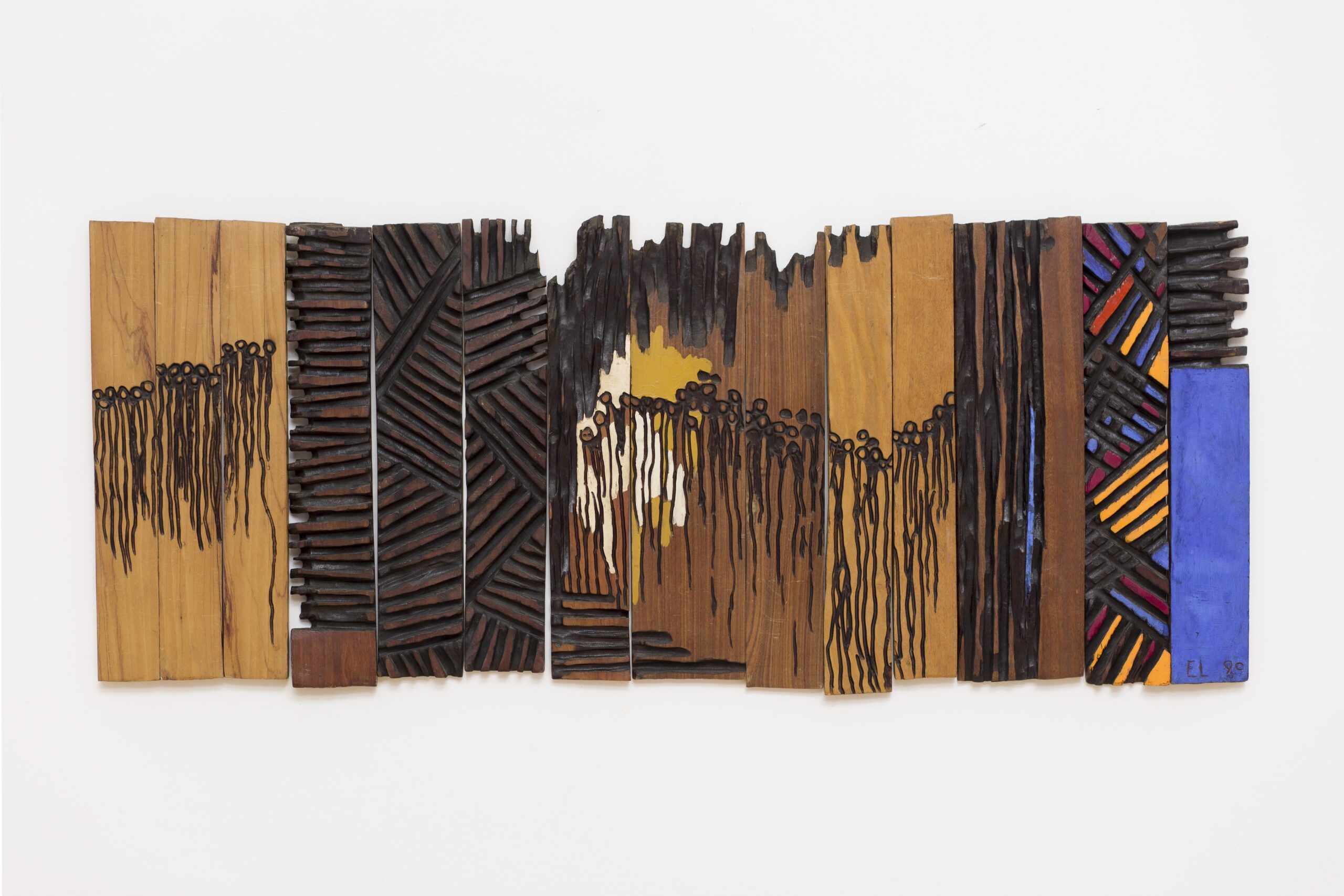 EL ANATSUI (b. 1944), “Solemn Crowds at Dawn,†1989 (wood, 65 x 140 cm). | © El Anatsui. Tate Collection