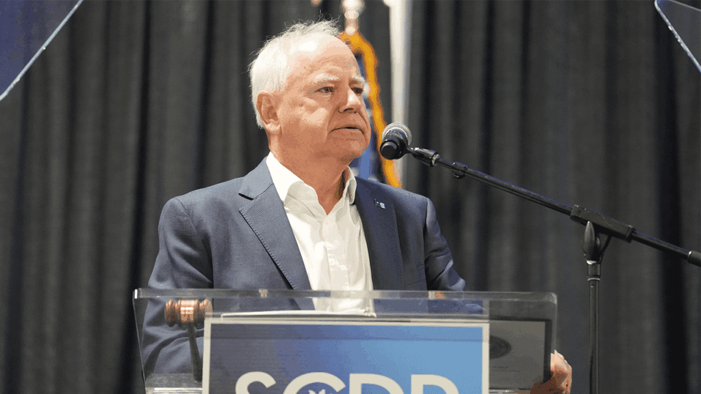 Gov. Tim Walz took jabs at Trump and sought to energize Democratic Party activists. (Win McNamee/Getty Images)